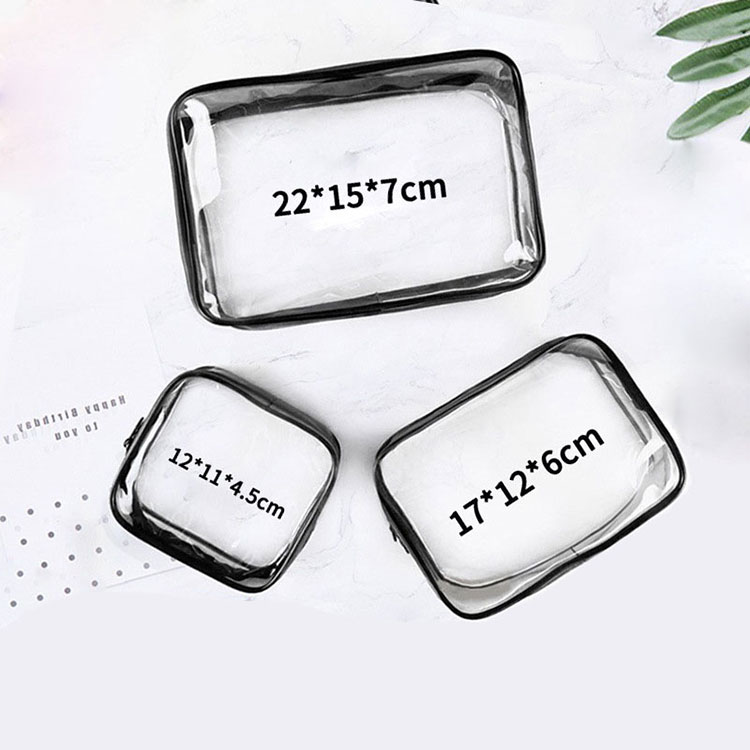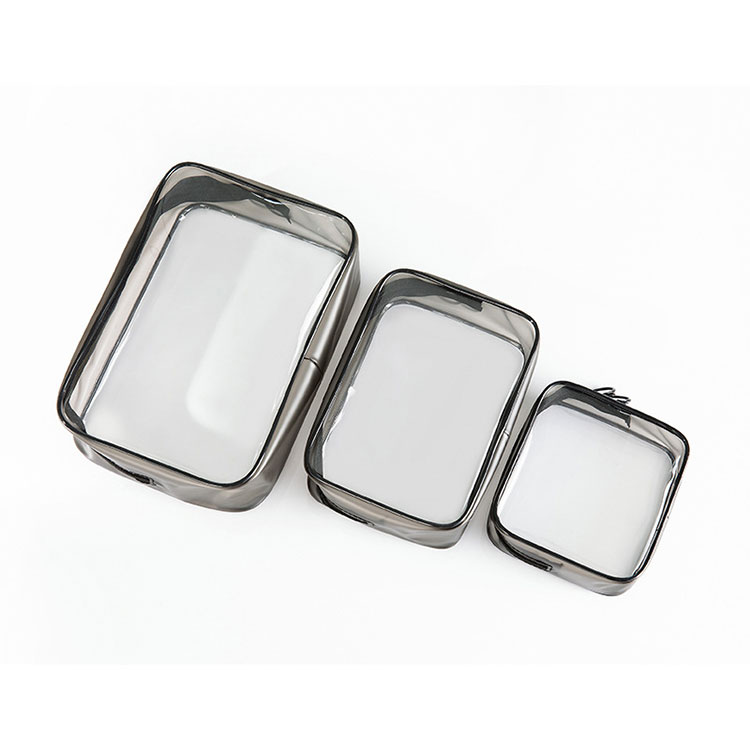 Užtrauktuko plotis tęsiasi iki pat dviejų „Clear Cosmetic Bag“ pusių, todėl jį visiškai atidarius anga atrodo labai erdvi, todėl daiktus laikyti ar paimti galima greičiau ir patogiau. Šiuo metu sandėlyje yra permatomų maišelių baltais apvyniotais kraštais ir permatomų maišelių juodai apvyniotais kraštais. Jei turite reikalavimų kitoms spalvoms, mes taip pat galime pritaikyti skirtingas spalvas, tačiau yra minimalus užsakymo kiekis.