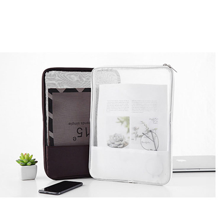 Mesh Zipper Travel Bag turi platų panaudojimo spektrą: svarbių dokumentų, tokių kaip sutartys, sertifikatai, testo popieriai, kvitai, pasas, asmens tapatybės kortelė, saugojimas; taip pat tinka rašikliams, gumai ir knygoms; Jis netgi gali būti naudojamas kaip tualeto reikmenų krepšys dantų šepetėliui, dantų pastai ir kitiems kelioniniams daiktams laikyti.