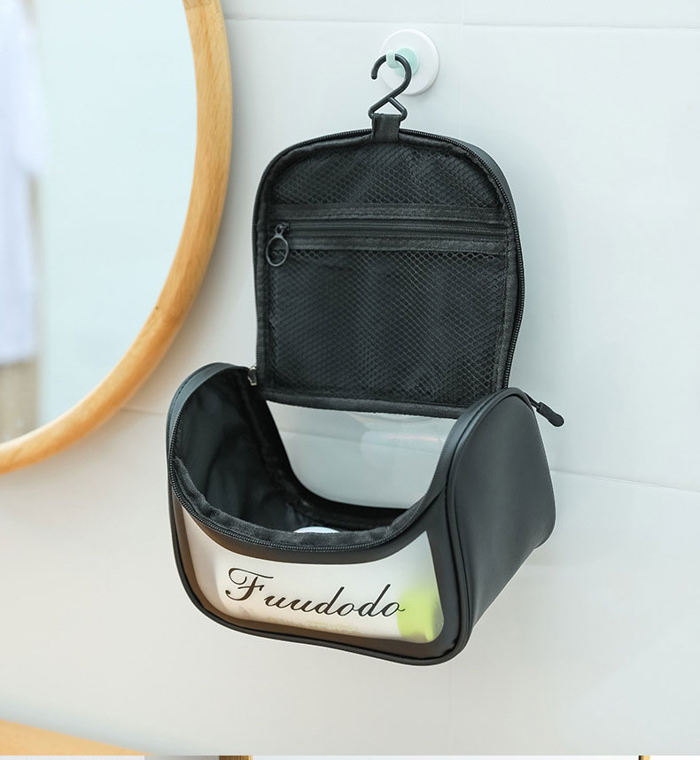 Kosmetikos krepšys su PVC siuvimo užtrauktuku yra lengvas ir nešiojamas, jis tinka daugelio rūšių gaminiams ir kosmetikos gaminiams. Jis taip pat pagamintas su rankena, kurią patogu nešioti ir galima pakabinti siena.